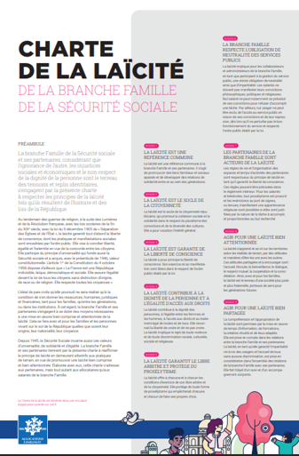 Les principes du service public dont la laïcité s'appuient sur la Charte de la Laïcité de la Branche Famille.