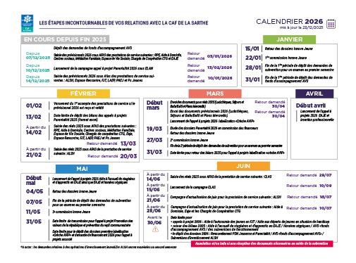 Le calendrier des démarches 2026