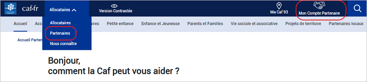 Connectez-vous à l'Espace bailleurs en cliquant sur "Partenaires" puis sur "Mon Compte partenaire".