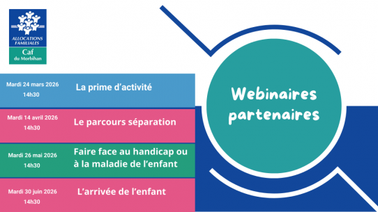 La Caf du Morbihan vous propose d'assister à des Webinaires réservés aux partenaires afin de vous aider dans l’accompagnement des usagers.