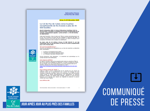 Mardi 16 décembre 2025, la Caisse d’Allocations Familiales (Caf) du Pas-de-Calais a procédé au versement de la prime exceptionnelle de fin d’année, communément appelée « prime de Noël », à 45 346 familles du département.